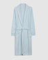 Women's shirt-style gown in blue made in 100% Pima cotton: hypoallergenic, organically grown fabric, and this, together with its sublime softness, makes it the best fabric to protect and care for the skin of the whole family.