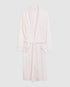 It features white piping and a matching embroidered moon on the sleeve. It has a wide belt for a snug fit and two pockets. It's the perfect match for our pink sleepshirt pajamas.