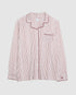 Dans un imprimé rayé bordeaux avec passepoil assorti, une poche en haut à gauche de la chemise et un pantalon avec une taille élastique et un nœud. Le poing a une lune Petite Siesta ® brodée à la main.